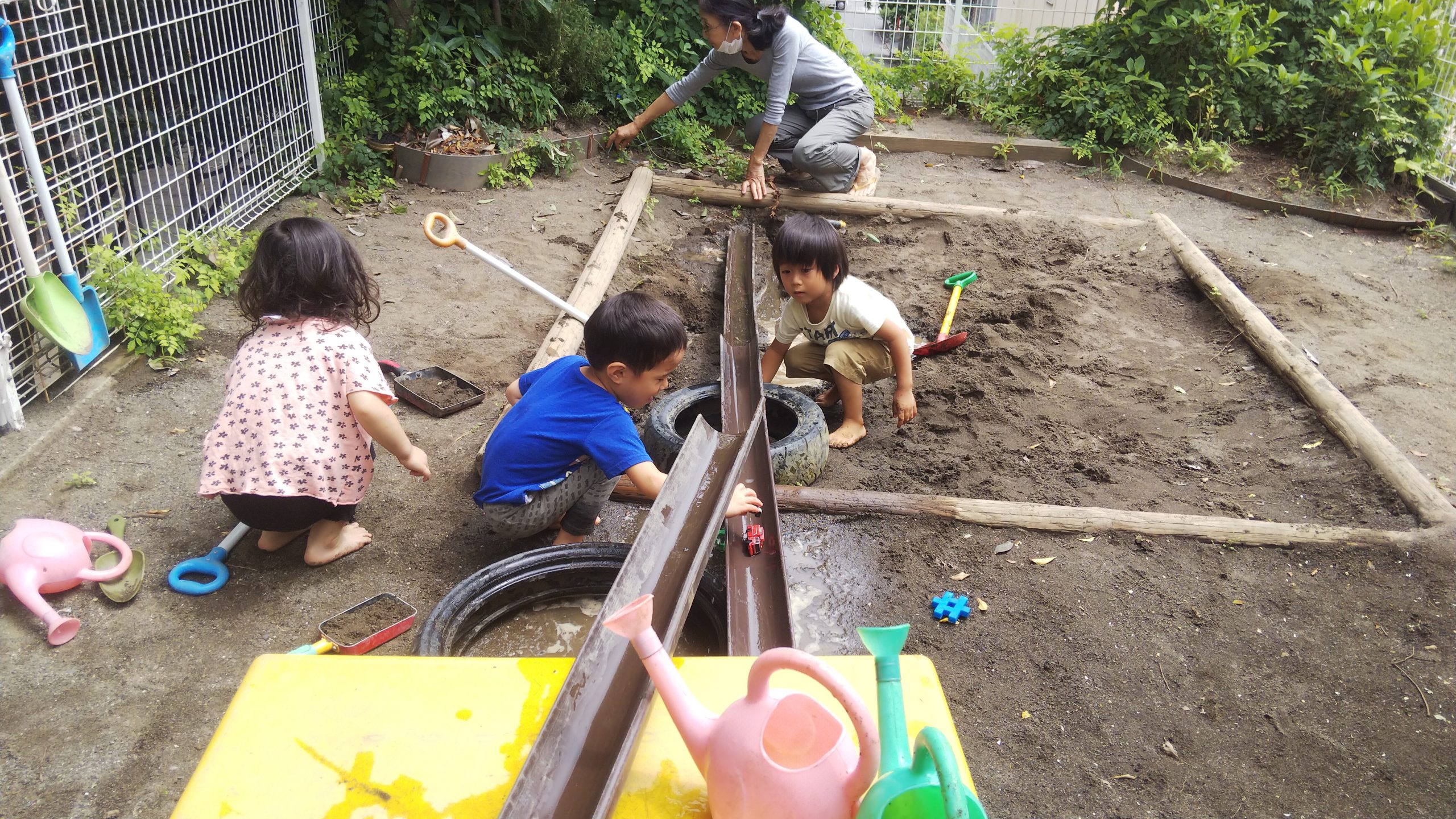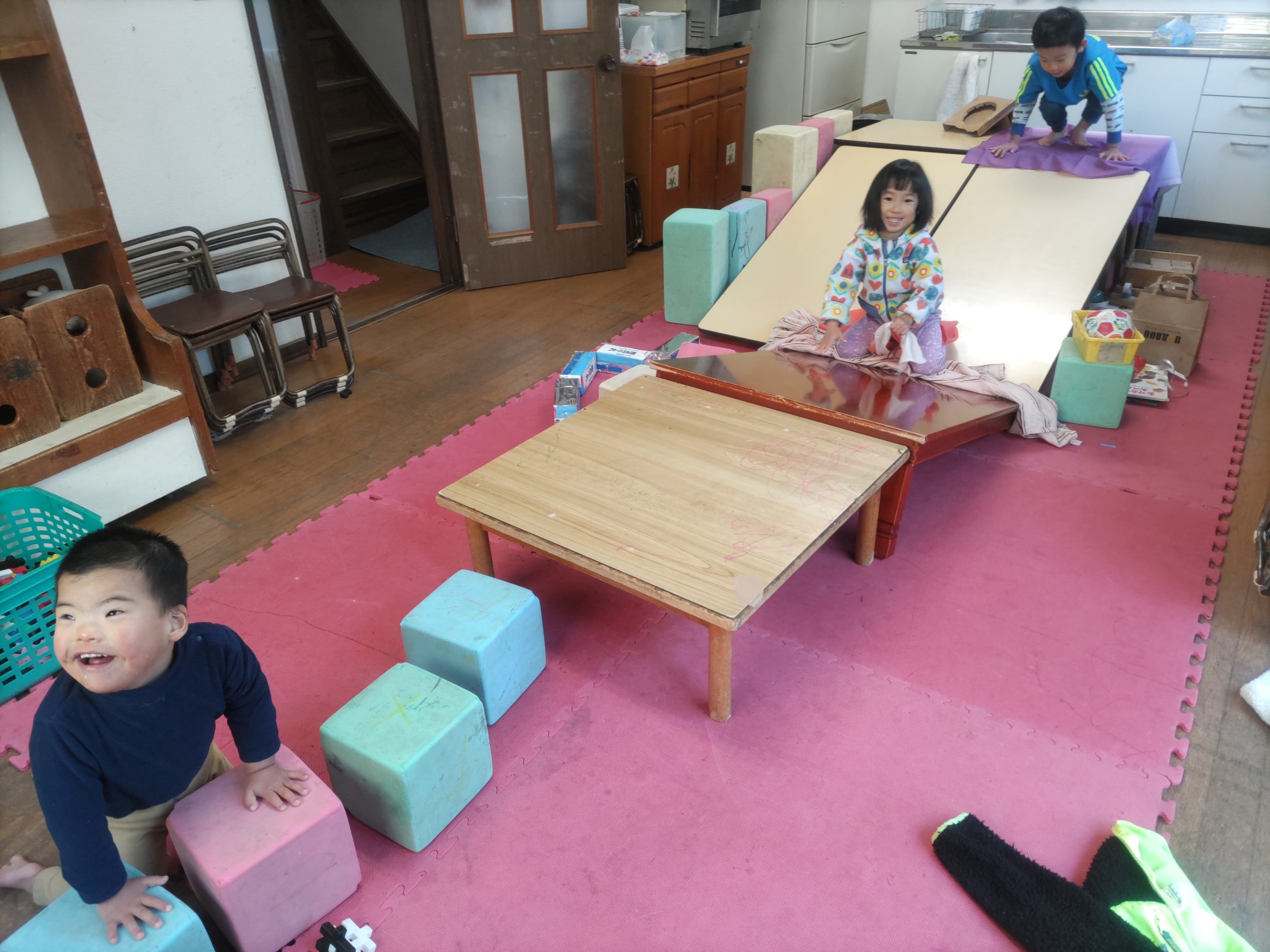 少し大きな子どもたち(2、3歳児)も隣で遊んでいます。