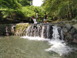 りんごの⽊夏季セミナーの配信も始まり、さて次にお出ましは 「OB ペガススキャンプ」でした。5歳児が⼀泊で⾏った丹沢皆 瀬川上流にあるペガススの家に⼩学⽣以上が⼆泊です。45⼈程 の⼀年⽣からおとなの⼈たちが前半、後半と⼆グループありま す。